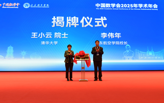 李伟年、王小云共同为刘徽学院揭牌。我校充分发挥高校资源优势,在牵头成立刘徽数学研究会的基础上,设立刘徽学院,致力于推动数学与航空交叉学科的推广应用。