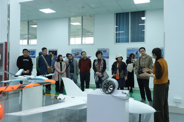 在航空工程学院,讲解员结合实际案例,详细介绍了无人机设计制作以及在农业植保、电力巡检、应急救援等领域的应用成果;在专业教师的指导下,画院成员依次坐上模拟飞行设备,手握操控杆,在虚拟场景中尝试起飞、巡航、降落等基础操作。在飞行学院,讲解员详细介绍了学校“从校门到舱门”全链条飞行员培养体系,以及飞行学院“党建红引领航空蓝”的特色育人模式,从课程设置、实训安排到就业保障,全方位展现了学校为航空事业输送人才的扎实举措;画院成员走进航空展室、实验室,登上波音737-300教学科研平台进行了参观。大家纷纷表示,这次体验不仅解锁了航空技能新体验,更让抽象的航空科技变得可触可感,为艺术创作积累了独特素材。