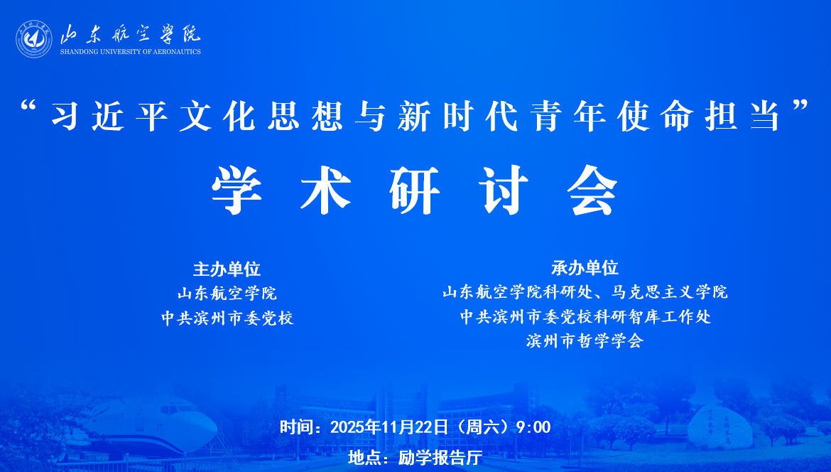 11月22日,“习近平文化思想与新时代青年使命担当”学术研讨会将在我校召开,本次会议由山东航空学院与中共滨州市委党校联合举办。