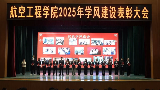 本次学风建设表彰大会是对学院优秀学子的鼓励与肯定,更是学院深化学风建设、推进高质量人才培养的重要举措。航空工程学院将以本次大会为契机,持续深化优良学风建设,激励全体师生以“时不我待”的紧迫感和“只争朝夕”的责任感,奋楫扬帆、砥砺前行,在航空强国建设中书写青春华章。