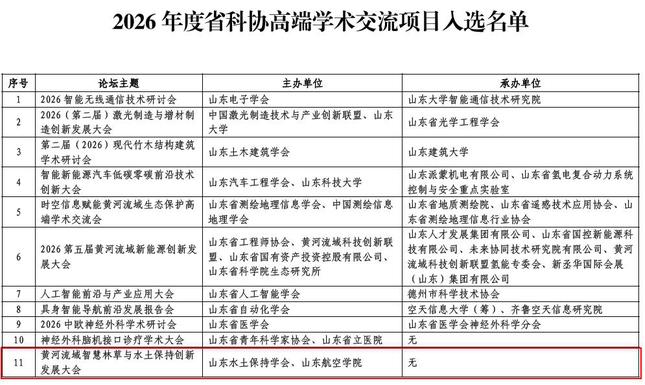 近日,山东省科学技术协会公布 2026 年度山东省科协高端学术交流项目入选名单,我校科协联合山东林学会申报的 “黄河流域生物多样性保护与林草碳固持学术研讨会”、联合山东水土保持学会申报的 “黄河流域智慧林草与水土保持创新发展大会” 双双成功入选,充分彰显我校在黄河流域生态保护相关领域的学术研究实力与行业影响力。