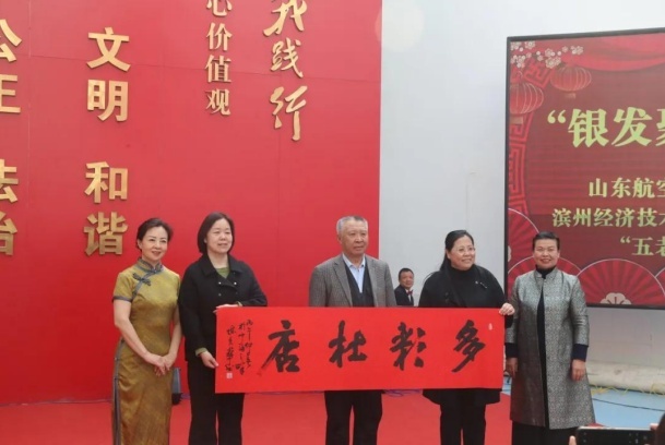 齐洪伟与我校离退休工作处(离退休干部党委)负责人分别致辞,向到场的“五老”代表致以敬意和问候,并表示将加强协作,大力推动银发人才助力高质量发展。石芳兰与我校离退休工作处(离退休干部党委)负责人共同为“山东航空学院银发人才助力高质量发展实践基地”揭牌。