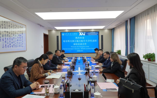 4月8日,乌克兰哈尔科夫国立航天航空大学副校长米卡伊尔・加拉耶夫、国际事务与欧洲一体化处处长达娜・图尔恰尼诺娃一行来校考察访问。我校党委书记李长海,党委副书记、校长李伟年,党委委员、副校长郭新伟热情接待了代表团一行。