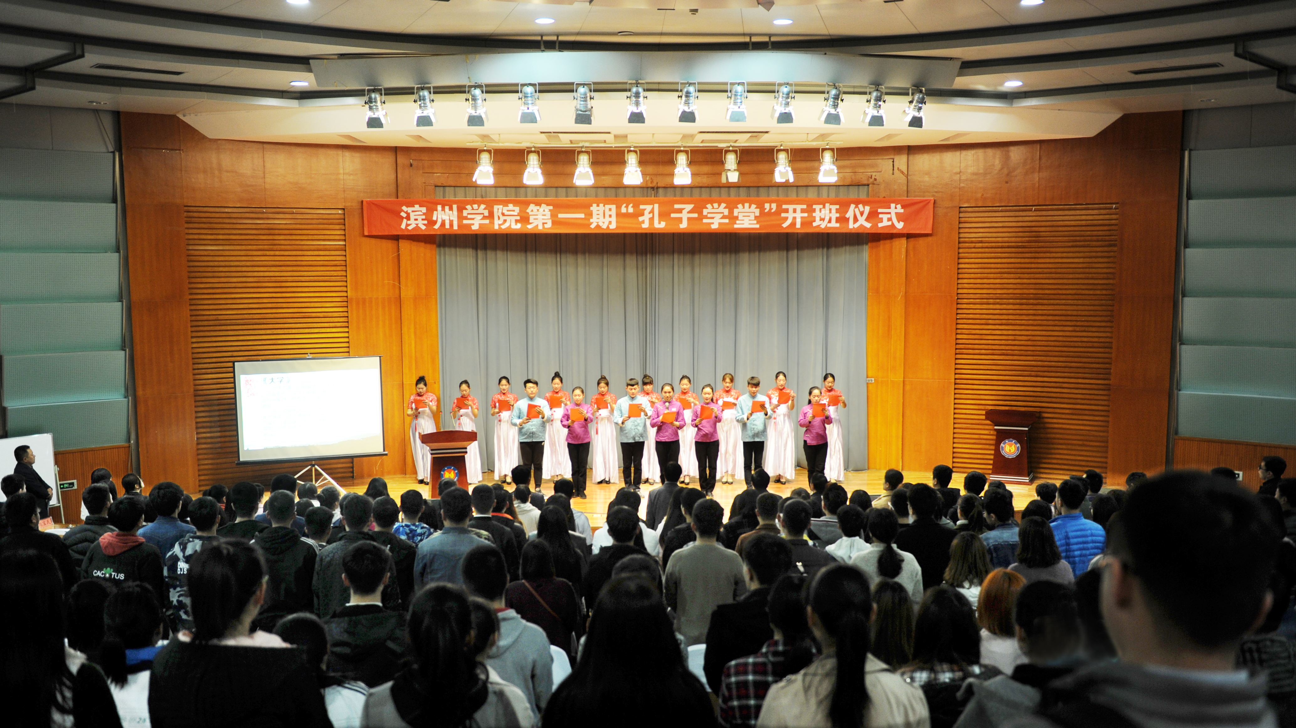 仪式上,教师教育学院负责人致辞,并为“孔子学堂”学员授书;“孔子学堂”学员齐诵《大学》精选,学员代表作了发言。