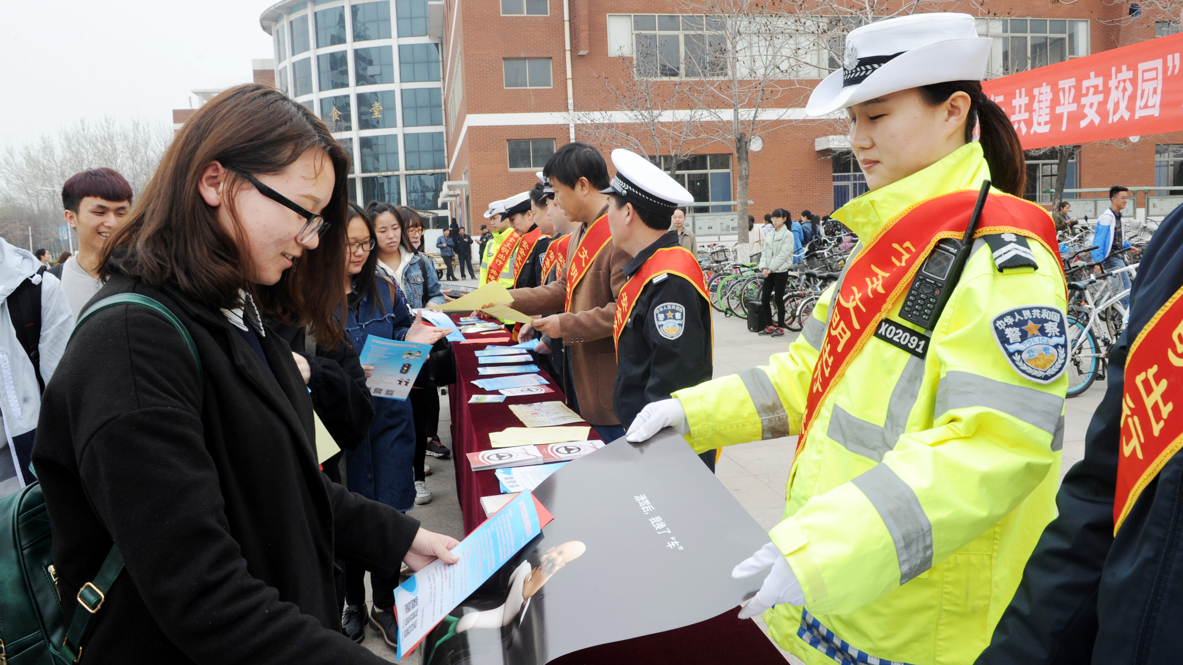 3月20日上午,我校春季“交通安全宣传教育周”活动启动仪式在第二食堂广场举行。我校党委委员、副校长李伟年,滨州市公安局交警支队副支队长顾晓光等出席仪式。滨州市公安局交警支队、经济技术开发区交警大队有关人员,我校保卫处、学生工作部、团委相关人员和1000余名师生参加了仪式。