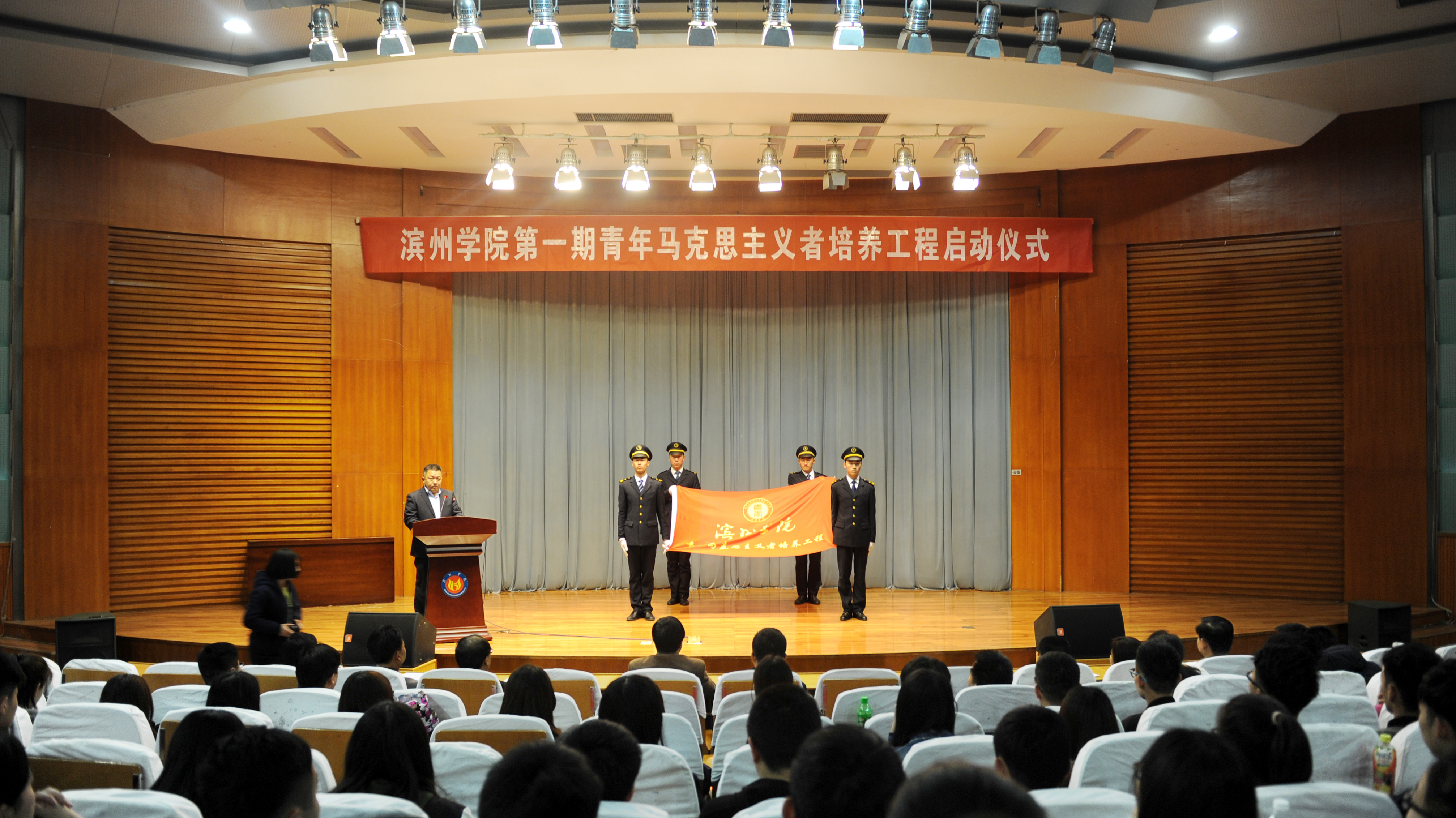 仪式上,党委组织部负责人向学员授旗;学生工作部负责人宣读了《关于成立滨州学院第一期青年马克思主义者培养工程班委会、团支部的通知》;第一期“青年马克思主义者培养工程”学员代表作了发言。
