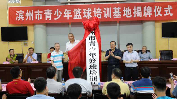 于志刚、李长海、纪敏尚、沈贤共同为滨州市青少年篮球培训基地揭牌