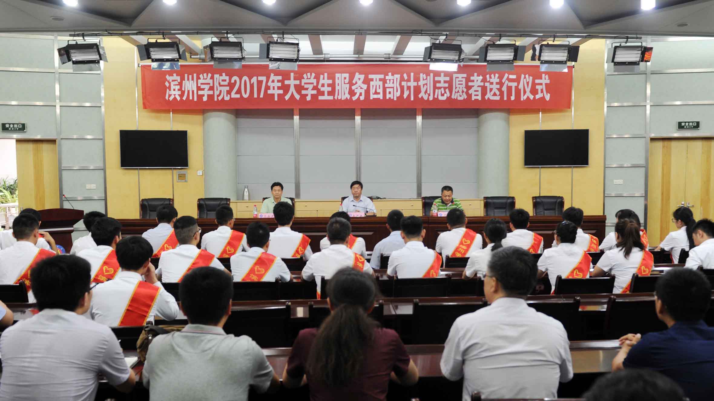 仪式上,团委负责人通报了我校2017年大学生服务西部计划志愿者工作开展情况,学生工作处负责人宣读了《关于授予郑璐等28名同学“滨州学院杰出志愿者”的决定》。