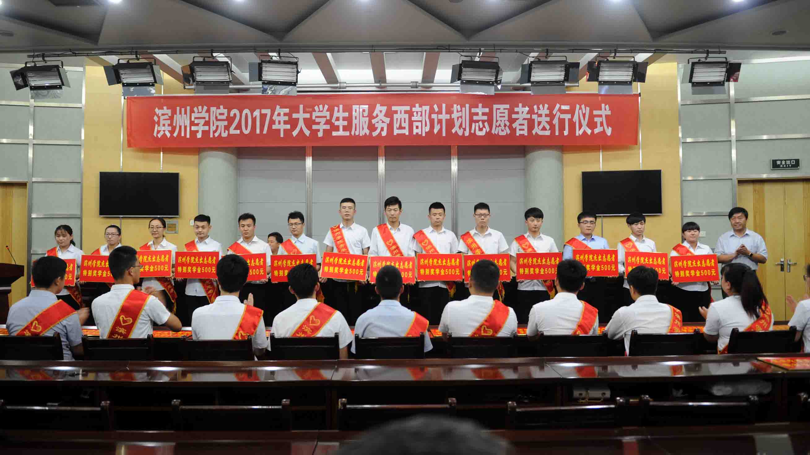 李伟年为服务西部计划志愿者颁发“滨州学院杰出志愿者”证书和特别奖学金,并勉励志愿者们要尽快适应环境,立志艰苦创业,掌握工作本领,甘于奉献基层,锐意进取、开拓创新,在西部大开发中建功立业。