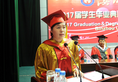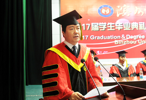 典礼上,李长海宣读了《滨州学院关于授予2017届本科毕业生学士学位的决定》,李伟年宣读了《滨州学院关于表彰2017届优秀毕业生的决定》。
