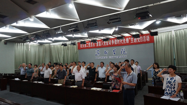 各党总支的庆祝活动主题鲜明,学校领导以普通党员身份参加各个总支的活动。机关第一党总支举行了“七一”主题党日活动,通过爱生助学捐助仪式、专题党课、爱校奉献义务劳动,喜迎“七一”;机关第二党总支开展了“重温入党誓词,争做时代先锋”主题党日活动,全体党员面对鲜红的党旗,庄严宣誓,重温入党誓词,邀请学校理论宣讲团成员作了题为“模范党员干部的时代解读”的报告,总支所属6个党支部的党员代表分别讲述了自己的“工作故事”,使党员干部受到了一次深刻的党性教育;机关第五党总支组织全体党员到渤海革命老区纪念园开展党性教育活动,深切缅怀为革命事业前仆后继、英勇献身的革命先烈,接受了一次深刻的爱党爱国教育和精神洗礼;航空工程学院党总支组织全体教工党员和学生党员赴博山参观了博山焦裕禄纪念馆和山东原山艰苦创业纪念馆,通过重温入党誓词、敬献花篮、新老党员代表发言等活动,进一步拓宽党员视野,加强党性教育;离退休老干部党总支的“庆七一”文艺演出、机关第四党总支的“迎七一• 颂党恩”诗文朗诵会、教师教育学院党总支的“庆七一党的生日”合唱比赛,以高涨的热情、美妙的歌声表达了对党、对祖国的无限热爱和对生活的美好祝愿。