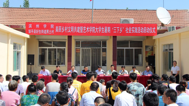 7月11日,我校与邹平县好生街道黑土村美丽乡村文明共建暨艺术学院大学生暑期“三下乡”社会实践活动启动仪式在黑土村举行。我校党委委员、副校长李伟年,邹平县县委常委、宣传部部长韩清霞出席仪式。好生街道办事处负责人,我校学生工作部、团委、艺术学院负责人,指导教师代表、大学生暑期社会实践团队成员及黑土村村民代表参加了仪式。