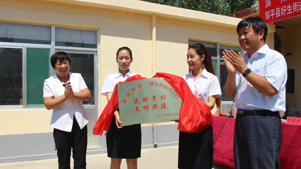 仪式上,李伟年、韩清霞共同为我校与邹平县好生街道黑土村美丽乡村文明共建活动揭牌,并向黑土村学龄儿童代表赠送公益礼品;艺术学院负责人和好生街道办事处负责人分别作了发言。