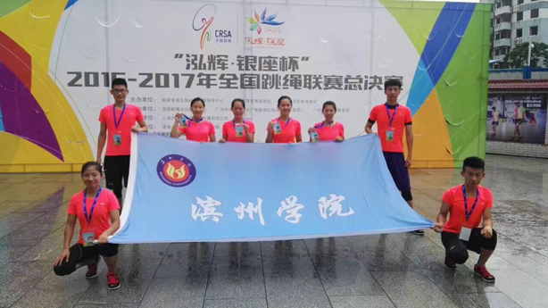 7月8—12日,“泓辉·银座杯”2016-2017年全国跳绳联赛总决赛在广州花都圆满落幕,我校学生花样跳绳代表队荣获2项冠军。其中,吕泽慧、泥凯旋获大学组一带一冠军,吕泽慧、泥凯旋、吕磊、屈雪梅、王文娟、孙振兴、郑双飞获大学组花样大众二级通级赛冠军。 本次比赛由国家体育总局社会体育指导中心、中国大学生体育协会联合主办,共有25个省市84支代表队1300名运动员参赛。