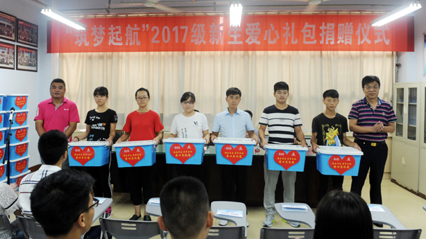 仪式上,韩延桐、贾守江分别向受赠学生捐赠了30份“筑梦启航”助学金和30个爱心礼包,并表示资助教育功在当代、利在千秋,愿意继续关注我校发展,关心学子成长。