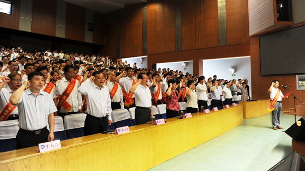 “我志愿做一名光荣的人民教师,遵守国家法律法规,忠诚党的教育事业,恪守教师职业道德,履行教师神圣职责。弘扬学校精神,践行校风校训,修身立德、为人师表,严谨治学、敬业爱生,追求真理、崇尚科学,传承文明、启智求真,终身学习、勇于创新……”在第33个教师节来临之际,伴随着全体与会教师的庄严宣誓,我校庆祝2017年教师节大会于9月7日上午在学苑会堂隆重举行。党委书记罗公利,党委副书记、校长刘春华出席大会,党委副书记杨洪章主持大会,党委委员、副校长张业赏,党委委员、纪委书记杨淑云,党委委员、副校长李长海、宋淑平、胡波出席会议。
