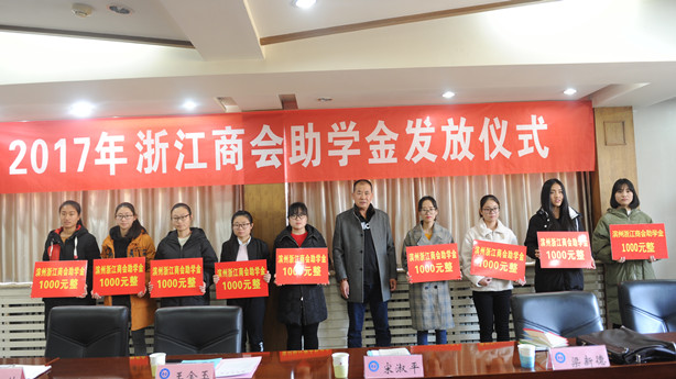 12月1日,我校2017年滨州浙江商会助学金发放仪式在办公楼南楼210会议室举行。我校党委副书记宋淑平,滨州浙江商会常务副会长王金玉、副会长梁新德出席仪式。我校学生工作处、合作发展处负责人,资助中心、教育发展基金会相关工作人员及全体受资助学生参加了仪式。