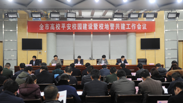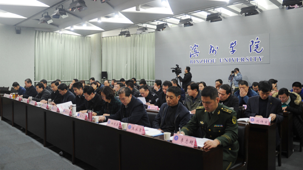 12月14日,全市高校平安校园建设暨校地警共建工作会议在我校学苑会堂第三报告厅召开,总结2017年度全市高校平安校园建设暨校地警共建工作开展情况,部署2018年度全市高校平安校园建设暨校地警共建工作。滨州市委常委、政法委书记孟晓雷,我校党委副书记、校长刘春华,我校党委委员、副校长杨玉森,滨州市委高校工委书记、市教育局局长王进东,市委政法委副书记、市综治办主任巴明华等出席会议。刘春华主持会议。