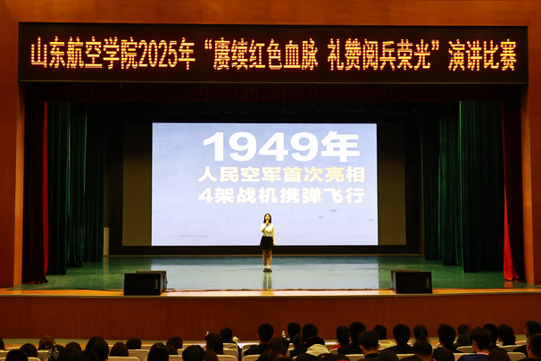 比赛过程中,各二级学院(学部)参赛选手紧扣主题,从不同视角诠释了红色血脉的传承与阅兵荣光的感悟。从铁流滚滚的阵列到老兵庄严的军礼,一句“山河无恙,如您所愿”道出了历史与当下的深情对话;从井冈山上的星火到长空战机的航迹,一声“课堂就是机库,所学即为底气”喊出了航空学子的时代强音。选手们的精彩演绎情真意切、激昂澎湃,使民族自信与红色力量在掌声中交融回荡,现场氛围庄重而热烈。