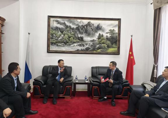 访问期间,代表团还先后拜会了中国驻俄罗斯大使馆教育处和中国驻伊尔库茨克总领事馆。在中国驻俄罗斯大使馆,代表团受到了使馆教育处曹士海参赞和文化处封立涛参赞等人的亲切会见;在中国驻伊尔库茨克总领事馆,代表团受到总领馆孙传江代总领事等人的亲切会见。会见期间,郭新伟向使领馆汇报了我校与俄罗斯高校和机构的交流与合作情况,并表达了希望在合作办学、师生交流、高层次人才引进等方面得到使领馆支持的意愿。