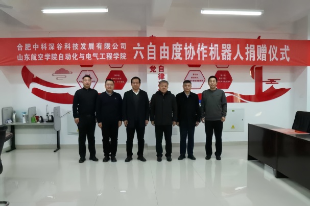 12月4日,我校自动化与电气工程学院在11号教学楼313会议室举行合肥中科深谷科技发展有限公司六自由度协作机器人捐赠仪式。学校党委委员、副校长刘宝民出席仪式并致辞,合作发展处负责人代表学校接收捐赠并向企业颁发捐赠证书。合肥中科深谷科技发展有限公司副总经理潘超、山东分部负责人周健春,山东大学机器人研究中心主任助理李国梁出席仪式,我校自动化与电气工程学院负责人及教师代表参加仪式。