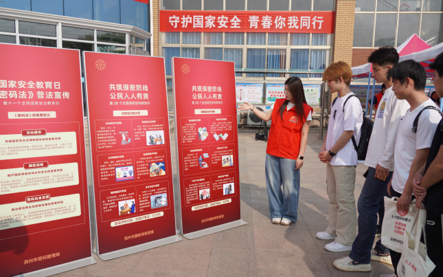 为深入贯彻总体国家安全观,切实强化全员安全保密意识,在第11个全民国家安全教育日、第38个全国保密宣传教育月来临之际,我校主动对接中共滨州市委国安办、滨州市国家保密局、滨州市密码管理局、滨州市档案馆等驻地相关部门进校园,于4月13日共同启动系列主题活动,紧扣“统筹发展和安全,护航‘十五五’新征程”“共筑保密防线,公民人人有责”两大主题,全力筑牢校园安全防线。