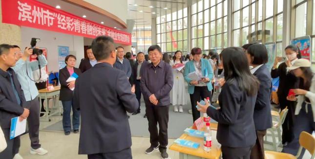 4月16日,“经彩青春 融创未来”滨州市金融业专场招聘会在我校明德报告厅成功举办。我校党委委员、副校长宫新军,滨州金融监管分局党委委员、副局长王芳,以及滨州市银行业协会、保险行业协会主要负责人出席活动,并深入招聘现场调研指导。