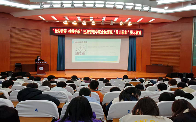 为提升青年学生的财商素养和专业能力,强化应对金融诈骗、非法证券期货活动的风险识别与防范水平,筑牢校园金融安全屏障,近日,经济管理学院联合山东省证券业协会、中泰证券滨州分公司,成功举办“经彩青春 投教护航”金融领域“反诈防非”主题教育活动,学院400余名师生现场聆听这场金融安全课堂。