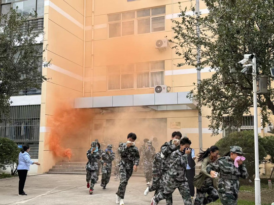“宿舍突发火情,浓烟封锁通道,请立即组织疏散!”9月,一场模拟宿舍火灾的消防实战演练在11号宿舍楼有序展开。在老师和宿管员的引导下,学生们弯腰捂鼻,沿着墙壁迅速撤离。消防救援人员对“火势”进行精准压制,消防员操控消防云梯,成功将“被困人员”转移至安全区域。工作人员在消防员的指导下,熟练完成了灭火器实操和伤员救助等演练流程。实战演练使同学们在模拟真实场景中,牢固掌握了应急处置技能。