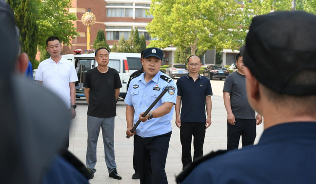 7月,保卫处联合公安机关开展暑期校园突发事件应急演练。演练中,民警对盾牌、抓捕器、钢叉等常用防暴器材的功能和操作要点进行了详细讲解,演示了以最小应急单元处置各种突发事件的技巧。现场模拟了校门遭遇不法人员袭击场景,安保人员迅速响应,紧密配合,成功处置了突发情况,展现了良好的应急处置能力。