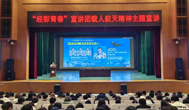 为弘扬载人航天精神,汲取榜样奋进力量,3月8日,经济管理学院在学苑会堂开展载人航天精神主题宣讲活动。2025级全体本科学生及部分专科学生到场聆听。