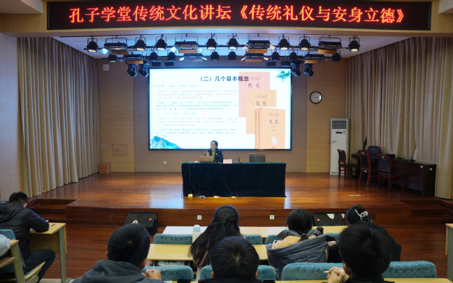 11月26日上午,徐慧文教授以“不学礼,无以立”开题,从个人、集体和国家的角度深入剖析“礼”的影响,并结合文化传承讲述中国传统礼仪的当代价值。以“礼主诚,礼主敬”为主旨讲解中国传统礼仪的内涵与基本特征,并结合自身实例论述中国传统礼仪在现代社会的应用。她强调“尊重”“得体”“舒服”“大方”是礼仪的最高境界,要求学生要认真学习、深入领会传统文化的深刻内涵,做“尚礼”“学礼”“明礼”“用礼”新时代青年,以更高的道德规范要求自己,牢牢把握弘扬中华优秀传统礼仪对培养和践行社会主义核心价值观的重要意义。中华优秀传统文化是中华民族的精神命脉,是当代青年大学生涵养社会主义核心价值观的重要源泉。