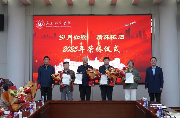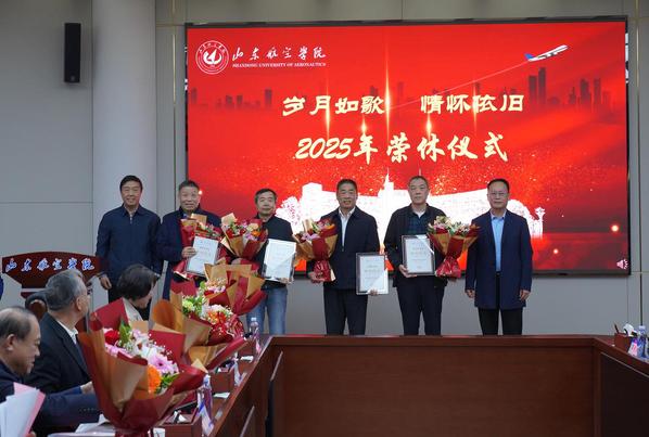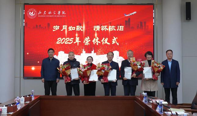 李伟年代表学校向各位荣休教职工致以诚挚问候与崇高敬意,对他们数十年如一日在各个岗位上的默默耕耘、无私奉献和辛勤付出表示衷心感谢。他指出,荣休既是职业生涯的圆满收官,更是对荣休同志深耕教育沃土、坚守育人初心的深情致敬与崇高礼赞。他强调,荣休同志们的青春年华、智慧汗水早已深深融入学校发展的血脉,成为山东航空学院砥砺前行历程中不可磨灭的珍贵印记。这场荣休仪式,既是对过往奉献的深情回望,更是一种精神的传承与力量的凝聚,必将激励着全体在职教职工特别是青年教师,接过立德树人的接力棒,传承优良作风、勇担时代使命,在学校高质量发展新征程上续写华章。他详细回顾了学校近年来跨越式发展的关键里程碑:成功获批硕士学位授予单位、正式更名为山东航空学院、跻身博士学位授予立项建设单位,办学实力与社会影响力显著提升。他特别强调,这些成绩的取得,离不开一代代山航院人的接续奋斗,更凝聚着各位荣休同志的心血智慧与无私付出。他期望各位老同志退休不褪色、离岗不离心,继续做学校发展的 “守护者”、办学精神的 “传承者” 和山航院故事的 “传播者”,一如既往地关心支持学校发展,充分发挥政治智慧深厚、学术积淀丰厚、人生阅历丰富的优势,在学科专业建设、人才培养提质、教学督导把关等方面继续发光发热,为学校破解发展难题、实现高水平应用型大学建设目标建言献策、贡献宝贵力量。