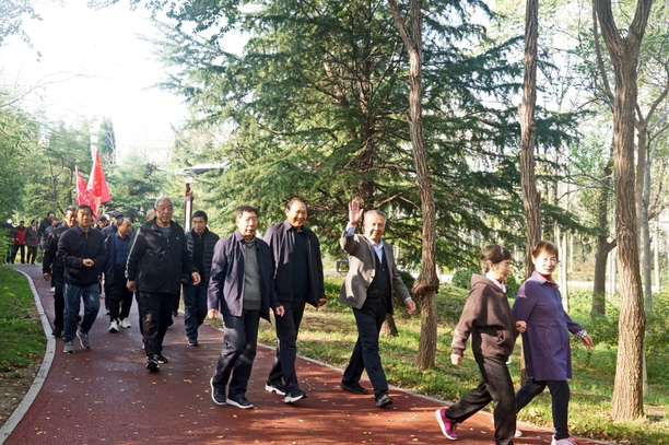 清晨的新立河公园,秋高气爽,景色如画。老同志们精神饱满、步伐矫健,沿着蜿蜒的健身步道结伴而行。大家边走边聊,欣赏沿途美景,交流生活趣事,欢声笑语不绝于耳,展现出我校离退休职工乐观向上、热爱生活的精神风貌。