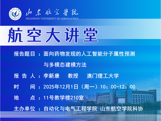 航空大讲堂(第18期):面向药物发现的人工智能分子属性预测与多模态建模方法